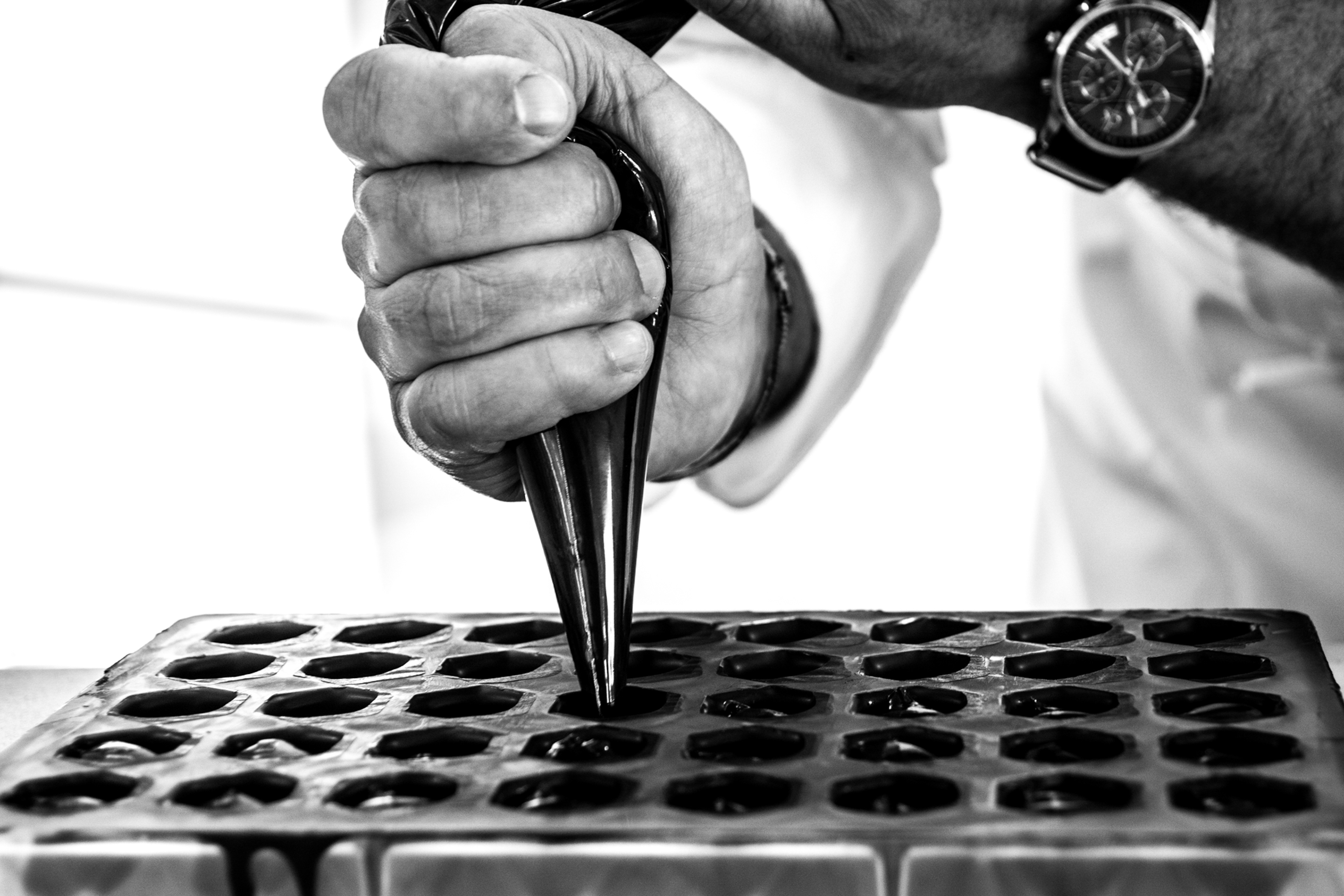 The creation of a chocolate.